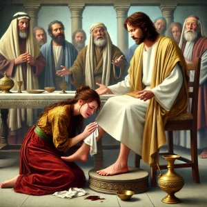 Love and Forgiveness: The Sinful Woman Who Washed Jesus’ Feet The room was filled with murmurs. A Pharisee named Simon had invited Jesus to dine,